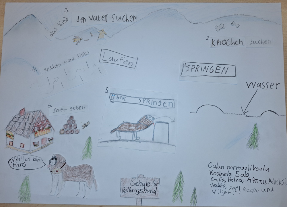 Vuonna 2024 järjestimme 5. luokkalaisille piirustuskilpailun, missä piti tehdä bernhardin koiralle harjoittelurata pelastuskoiran tehtävien harjoittelua varten.